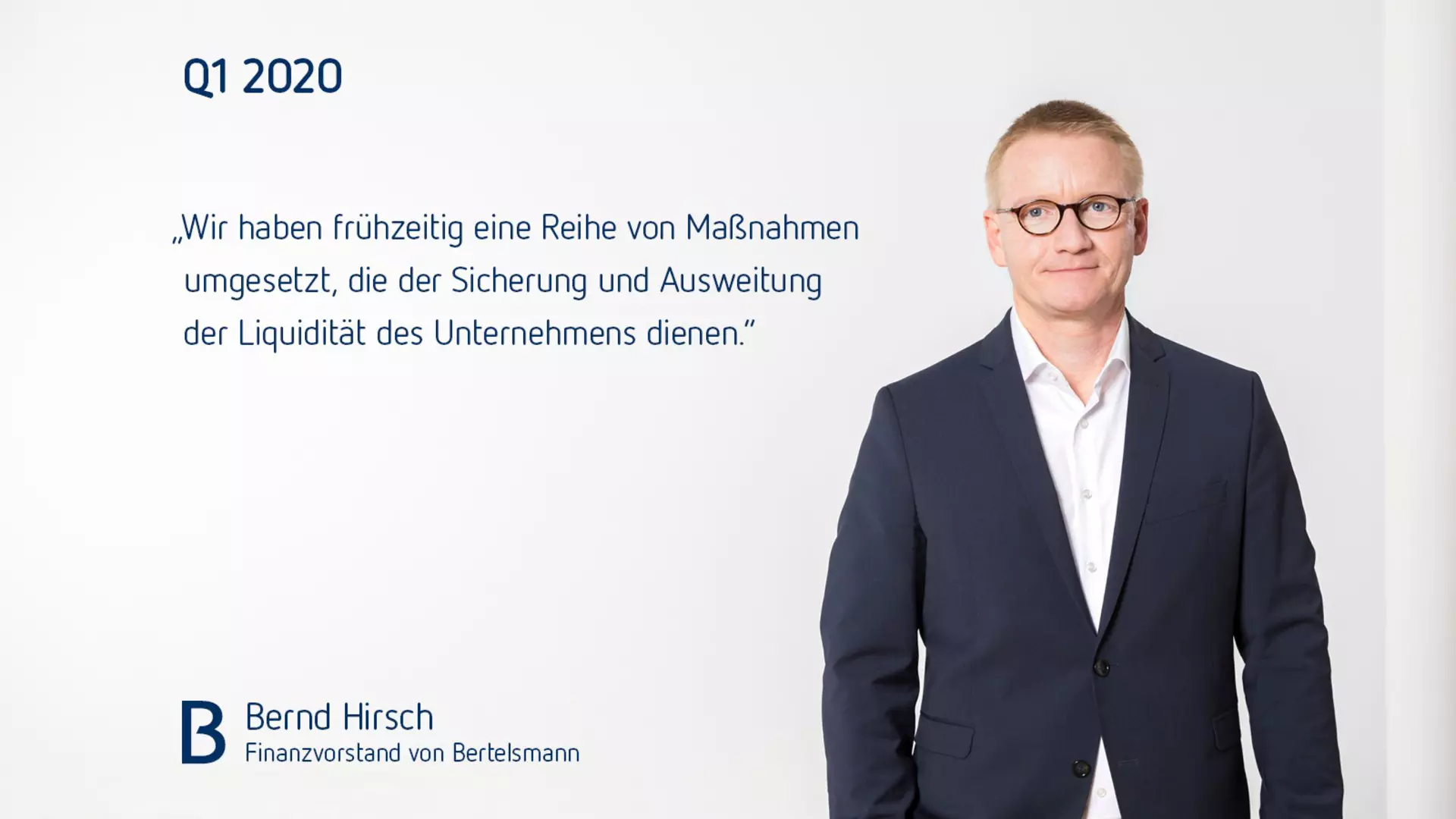 Bernd Hirsch, Finanzvorstand von Bertelsmann, ergänzte: „Wir haben frühzeitig eine Reihe von Maßnahmen umgesetzt, die der Sicherung und Ausweitung der Liquidität des Unternehmens dienen. Unter anderem haben wir einen Eurobond über 750 Mio. Euro und einer Laufzeit von acht Jahren erfolgreich platziert. Durch weitere kurzfristige Maßnahmen haben wir unsere liquiden Mittel darüber hinaus beträchtlich gesteigert. Diese werden wir zu gegebener Zeit und je nach Bedarf durch längerfristige Finanzierungen ersetzen, um die Finanzierungskosten und das Laufzeitenprofil von Bertelsmann weiter zu optimieren. Vor dem Hintergrund der sich dynamisch entwickelnden Corona-Krise kann die im Geschäftsbericht 2019 enthaltene Prognose für das Geschäftsjahr 2020 nicht aufrechterhalten werden. Eine belastbare Einschätzung der weiteren Geschäftsentwicklung für 2020 ist derzeit nicht möglich. Wir haben zahlreiche Gegenmaßnahmen bei Kosten und Investitionen getroffen, erwarten allerdings negative Auswirkungen auf unsere Ertragslage in den kommenden Monaten.“