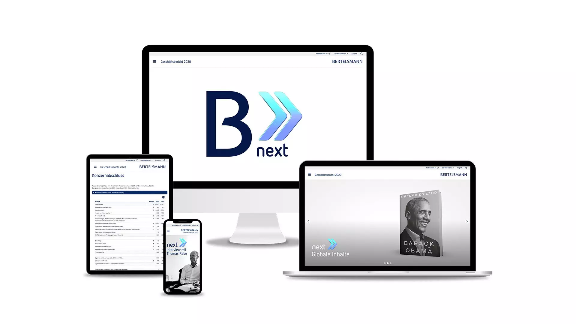 Der Geschäftsbericht 2020 des internationalen Medien-, Dienstleistungs- und Bildungsunternehmens Bertelsmann erscheint erstmals ausschließlich digital und ist ab sofort im Netz verfügbar. Im Mittelpunkt stehen die weiterentwickelten strategischen Prioritäten des Unternehmens, die in den nächsten Jahren für beschleunigtes Wachstum sorgen sollen. Unter dem Leitmotiv „Bertelsmann_next“ gibt der Geschäftsbericht einen Ausblick auf Ziele wie den Auf- und Ausbau nationaler Media-Champions oder den Ausbau der globalen Inhaltegeschäfte und der globalen Services von Bertelsmann. Interessierte erwartet eine Vielzahl digitaler Bonus-Inhalte von Videos über Podcasts bis hin zu Leseproben und weiterführenden Links, anhand derer sich die Erfolge und Vorhaben der Bertelsmann-Geschäfte unterhaltsam und informativ erschließen lassen.