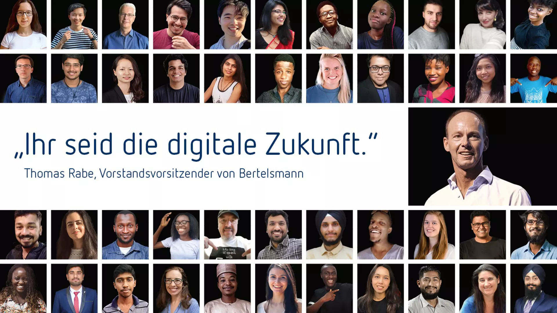 Für Karin Schlautmann, Leiterin der Bertelsmann-Unternehmenskommunikation, ist die große Resonanz auf die Stipendien-Initiative auch auf die begleitende Imagekampagne zurückzuführen, die Bertelsmann unter das Motto „Ihr seid die digitale Zukunft“ gestellt hat: „Wir zeigen, dass digitaler Weiterbildung eine große gesellschaftliche Bedeutung zukommt und Bertelsmann das Thema digitale Transformation ernsthaft vorantreibt. Es ist erfreulich, dass unsere Kampagne bei so vielen Menschen ankommt.“