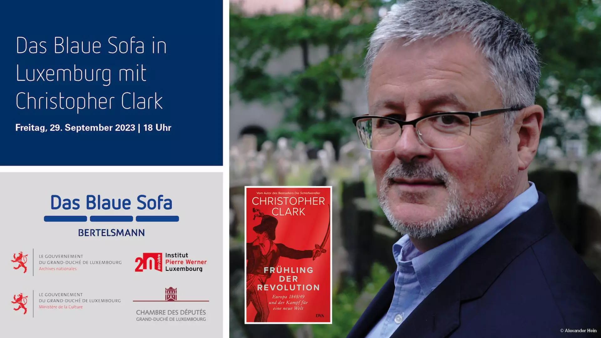 Bertelsmann Chairman & CEO Thomas Rabe says: “Christopher Clark is one of the most distinguished historians of our time and at the same time one of our the most successful nonfiction authors at Penguin Random House Verlagsgruppe. His new book and his appearance on the Blue Sofa are dedicated to the year 1848, which had a formative significance for Luxembourg and the whole of Europe. We look forward to an insightful cultural evening with him at the Institut Pierre Werner.”